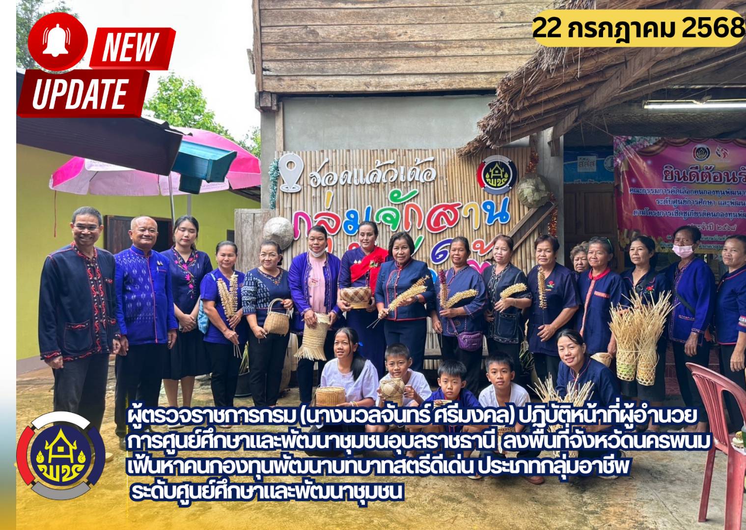(เคาท์ดาวน์)G cdd นครพนม FC : ทีมดี ชี้เป้าหมายชัด จัดการดี ภาคีช่วยทำ นำงานสร้างสรรค์ ผู้ตรวจราชการกรม (นางนวลจันทร์ ศรีมงคล) ปฏิบัติหน้าที่ผู้อำนวยการศูนย์ศึกษาและพัฒนาชุมชนอุบลราชธานี ลงพื้นที่จังหวัดนครพนม เฟ้นหาคนกองทุนพัฒนาบทบาทสตรีดีเด่น ประเภทกลุ่มอาชีพระดับศูนย์ศึกษาและพัฒนาชุมชน วันที่ 22 กรกฎาคม 2568 เวลา 13.00 น. ณ ที่ทำการกลุ่มสัมมาชีพจักสานบ้านหัวขัวใต้ หมู่ที่ 1 ตำบลหนองย่างชิ้น อำเภอเรณูนคร จังหวัดนครพนม ผู้ตรวจราชการกรม (นางนวลจันทร์ ศรีมงคล) ปฏิบัติหน้าที่ผู้อำนวยการศูนย์ศึกษาและพัฒนาชุมชนอุบลราชธานี เป็นประธานคัดเลือกคนกองทุนพัฒนาบทบาทสตรีฯ พร้อมด้วย นายคำพอง วรรณวัติ ผู้อำนวยการกลุ่มงานบริการทางวิชาการ ศูนย์ศึกษาและพัฒนาชุมชนอุบลราชธานี กรรมการ และนางสาวพิมพัตร สุทธิประภา ผู้ช่วยผู้ตรวจราชการกรมฯ กรรมการและเลขานุการ ร่วมเป็นคณะกรรมการคัดเลือกฯ ลงพื้นที่จังหวัดนครพนม เฟ้นหาคนกองทุนพัฒนาบทบาทสตรีดีเด่น ประเภทกลุ่มอาชีพระดับศูนย์ศึกษาและพัฒนาชุมชน ในการนี้ นายปราชญา อุ่นเพชรวรากร ผู้ว่าราชการจังหวัดนครพนม มอบหมายให้ นางกนกรัชต์ วงษ์กาฬสินธุ์ พัฒนาการจังหวัดนครพนม พร้อมด้วย นายทศพร แก้วดี ผู้อำนวยการกลุ่มงานประสานและสนับสนุนการบริหารงานพัฒนาชุมชนจังหวัดนครพนม นายภัทรชัย หาญวิศิษฏ์ นายอำเภอเรณูนคร นายศักดิ์วิวัฒน์ คำป้อง นายกองค์การบริหารส่วนตำบลหนองย่างชิ้น นายพงศ์วิชญ์ เขียวมณีรัตน์ พัฒนาการอำเภอเรณูนคร พร้อมหัวหน้าส่วน ราชการอำเภอ คณะกรรมการกลุ่มและสมาชิกกลุ่มฯ ร่วมให้การต้อนรับและนำเสนอข้อมูลฯ สำหรับการจัดกิจกรรมในครั้งนี้ มีวัตถุประสงค์เพื่อส่งเสริม สนับสนุนให้สตรีได้เข้ามามีส่วนร่วมในการดำเนินงานกองทุนพัฒนาบทบาทสตรี ยกย่องและเชิดชูเกียรติคนกองทุนพัฒนาบทบาทสตรีดีเด่นที่มีผลการปฏิบัติงานที่มีประสิทธิภาพสามารถเป็นแบบอย่างได้ และที่สำคัญคือสร้างขวัญ กำลังใจแก่ผู้ปฏิบัติงานกองทุนพัฒนาบทบาทสตรีในพื้นที่ ให้เกิดความภาคภูมิใจในผลสำเร็จจากการนำเงินทุนไปประกอบอาชีพ และกลไกการขับเคลื่อนกองทุนพัฒนาบทบาทสตรี เกิดการพัฒนาศักยภาพและบทบาทของตนเองเพิ่มขึ้น จะได้นำความรู้ความสามารถไปใช้ในการปฏิบัติงานเพื่อขับเคลื่อนกองทุนพัฒนาบทบาทสตรีให้บรรลุวัตถุประสงค์ และเป้าหมายของกองทุนพัฒนาบทบาทสตรี เพื่อร่วมกันสร้างสรรค์งานให้เกิดประโยชน์ต่อสมาชิกในชุมชนได้อย่างยั่งยืน #MOI #กระทรวงมหาดไทย #บำบัดทุกข์บำรุงสุข #กรมการพัฒนาชุมชน #พช.นครพนม #พชเรณูนคร #กองทุน
